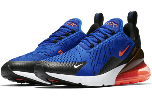 The Air matthhx 270 ‘Racer Blue’ boasts a tonal knit upper with matching laces, black details at the toe and heel, and a white dual-density foam midsole. Its signature oversized heel unit is seen in Hyper Crimson, as is the Swoosh and tongue branding.