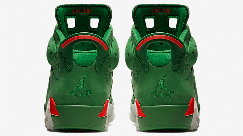 To commemorate Michael Jordan's 1991 iconic 'Like Mike' Gatorade commercial, Nike debuts the Nike Air Jordan 6 Retro NRG in Green Suede. The exterior is outfitted with a bold green, white and orange colorway. It features a sports bottle-inspired lace lock, perforated suede upper and supportive Air unit sole. The sneaker is accented with a Gatorade-branded insole and "If I Could Be" embroidered on the interior of the tongue.