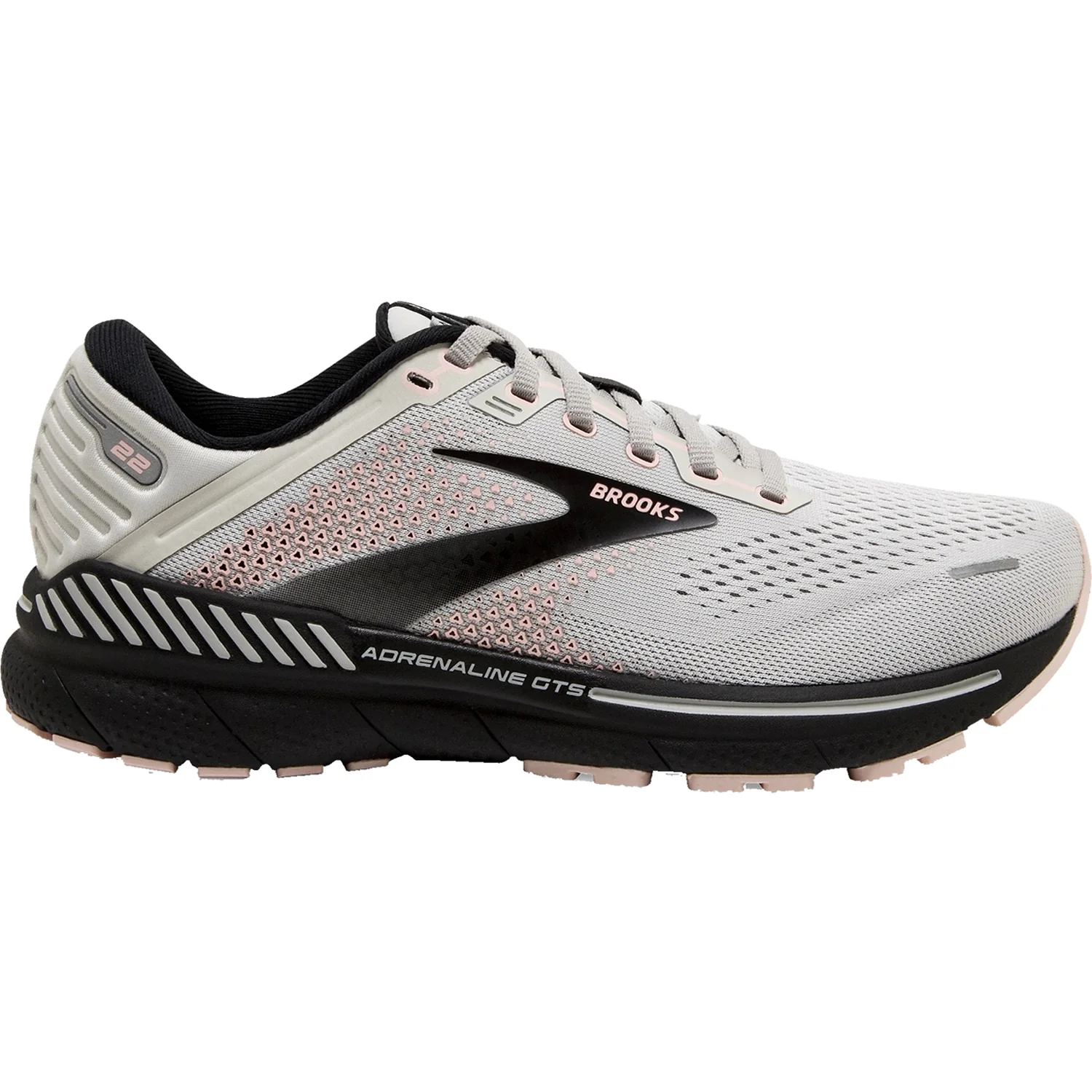 These Brooks Adrenaline GTS 22 Grey/Rose/Black Mesh Women's Shoes have the following features: